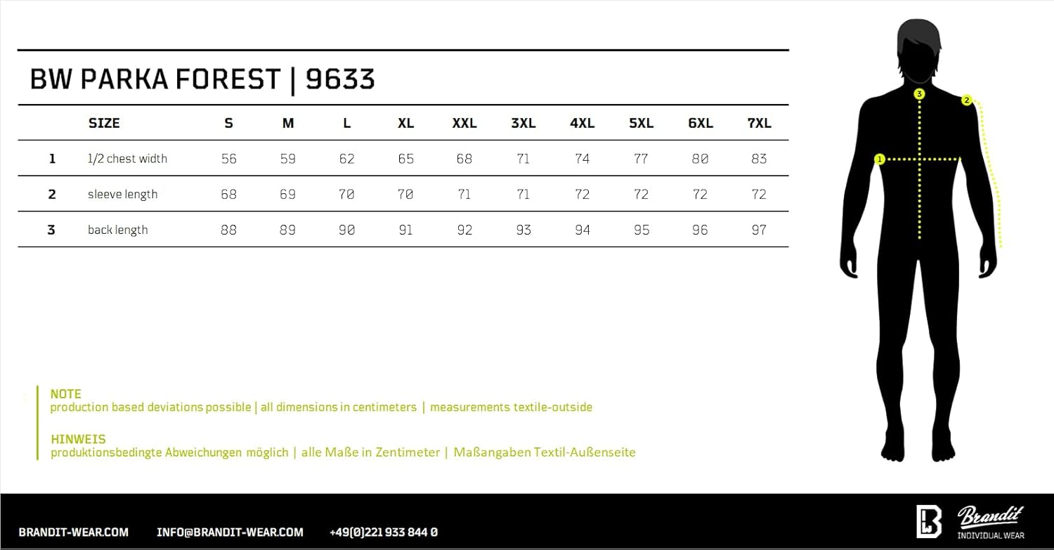 La Brandit è una garanzia. Gran parka, caldissimo e ottimamente rifinito. Spedizione velocissima, tutto ok. XXL perfetta per altezza 186 e circa 95 kg