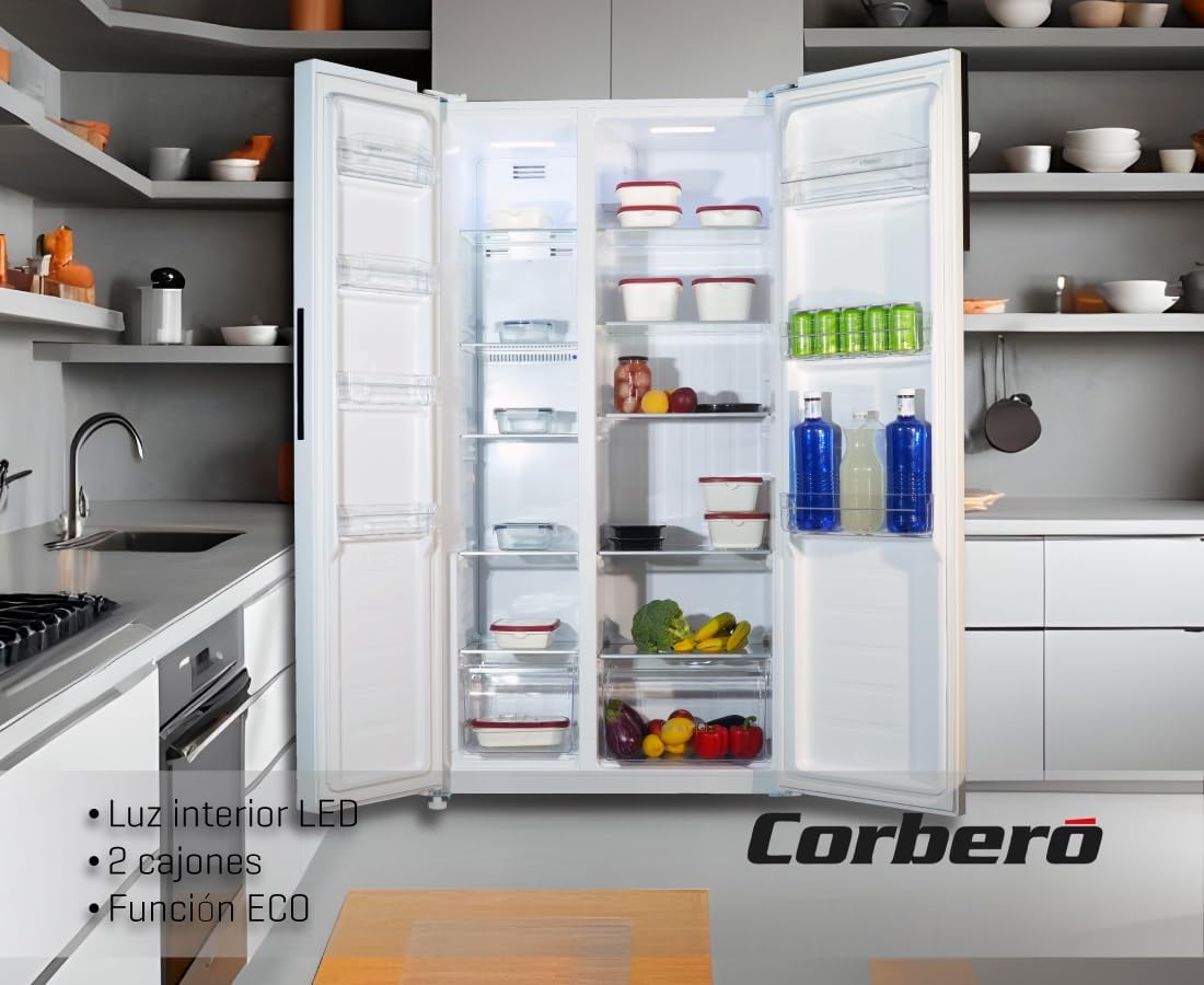 This 442-liter American fridge offers a perfect combination of capacity, efficiency and comfort. Its spacious design accommodates the needs of large families or organizational lovers, allowing for a wide variety of food storage. Equipped with No Frost technology, inverter motor and ECO function, ensures efficient, quiet and sustainable performance. Integrated LED lighting improves interior visibility and brings a modern touch. A complete solution for those looking for functionality, energy savings and everyday convenience in their kitchen.