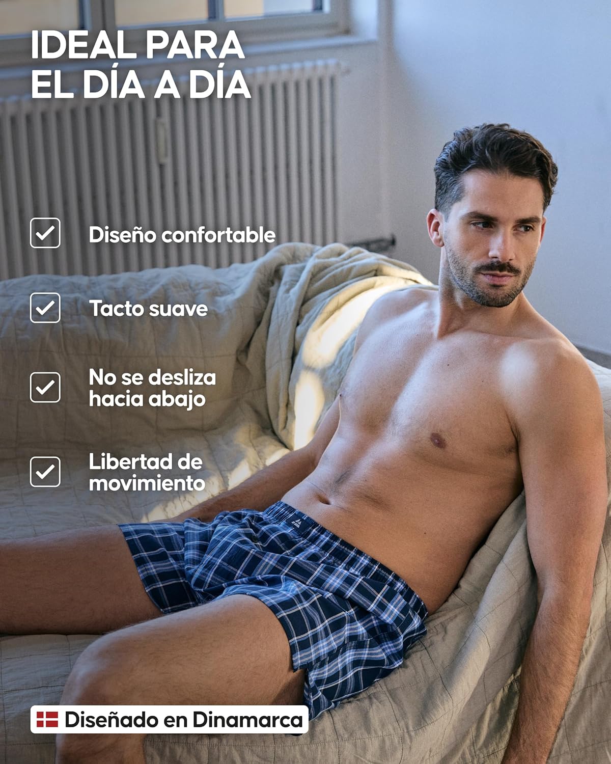 Estos boxers de algodón orgánico destacan por lo cómodos que son desde el primer uso. El tejido es suave, transpirable y no da sensación de agobio incluso después de varias horas. El ajuste es firme sin apretar, y las costuras están bien rematadas, asà que no hay roces ni molestias. Mantienen la forma tras los lavados y no se deforman en la cintura. Una opción fiable y de buena calidad para el dÃa a dÃa.