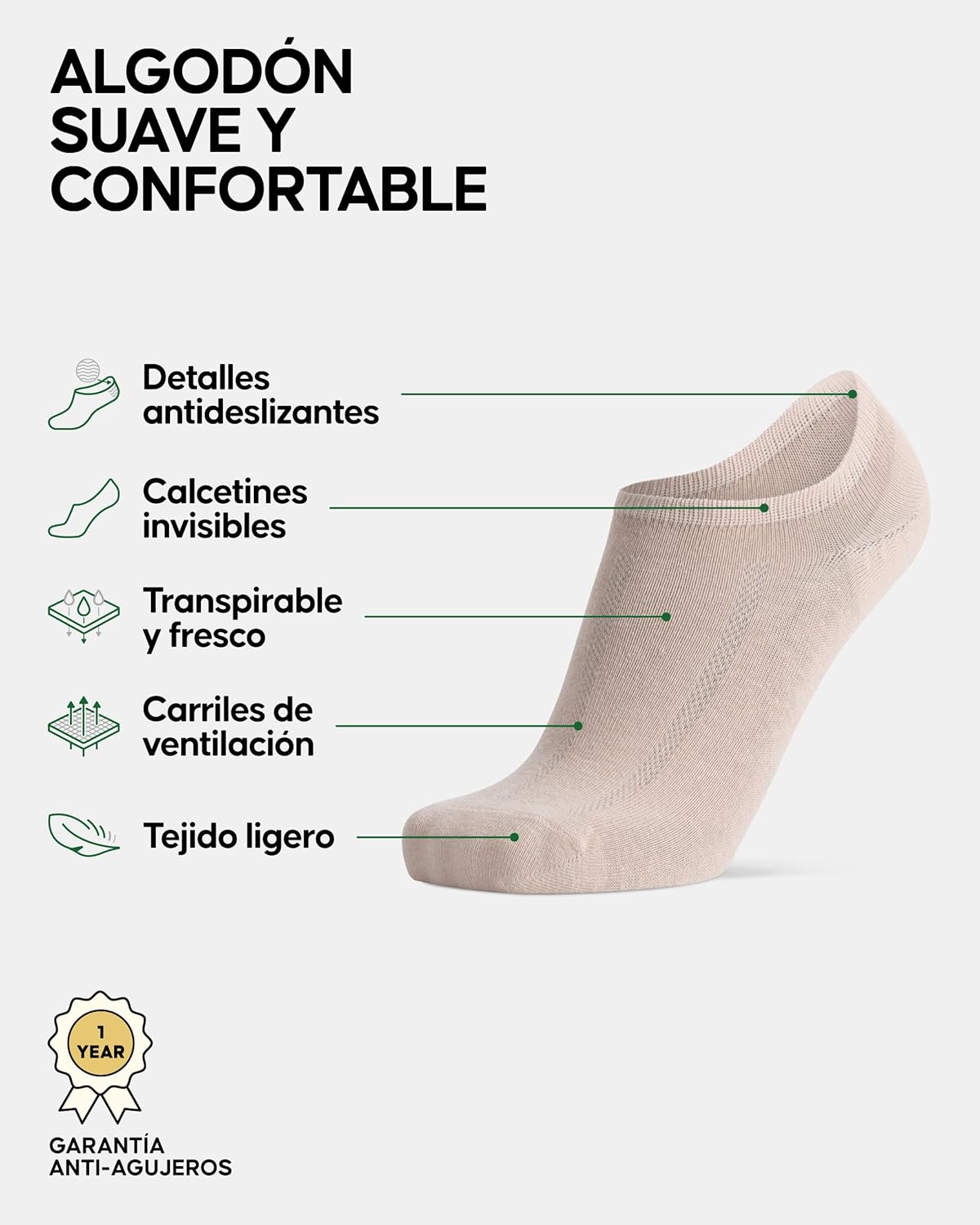 Calcetines invisibles o pinkies unisex de muy buena calidad. Me han sorprendido agradablemente en ese sentido por su durabilidad, resistencia y comodidad. Quizás algo cortos por lo que comprimen un poco al ponérselos pero luego te olvidas de ellos una vez los llevas puestos un rato. Muy recomendables.
