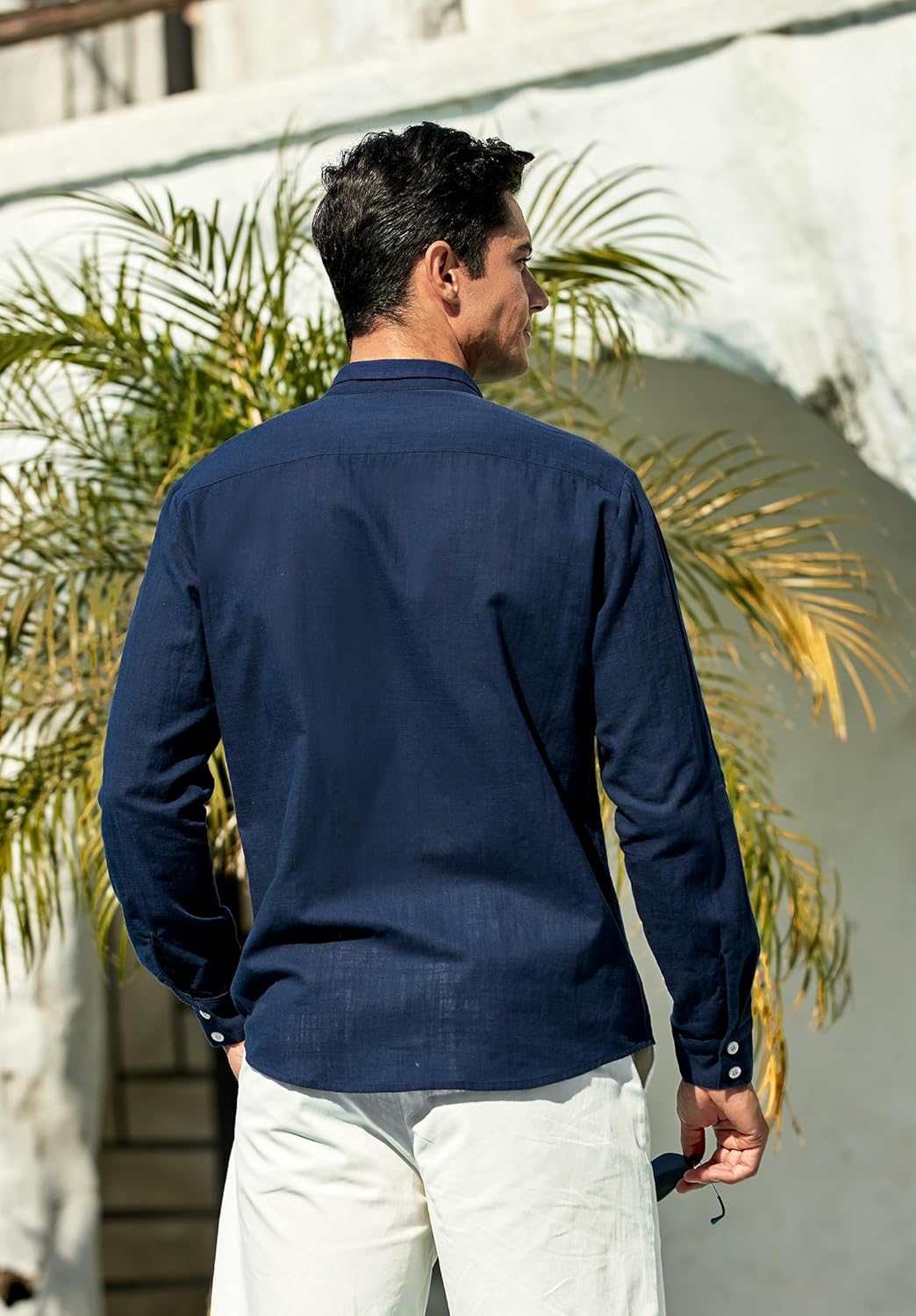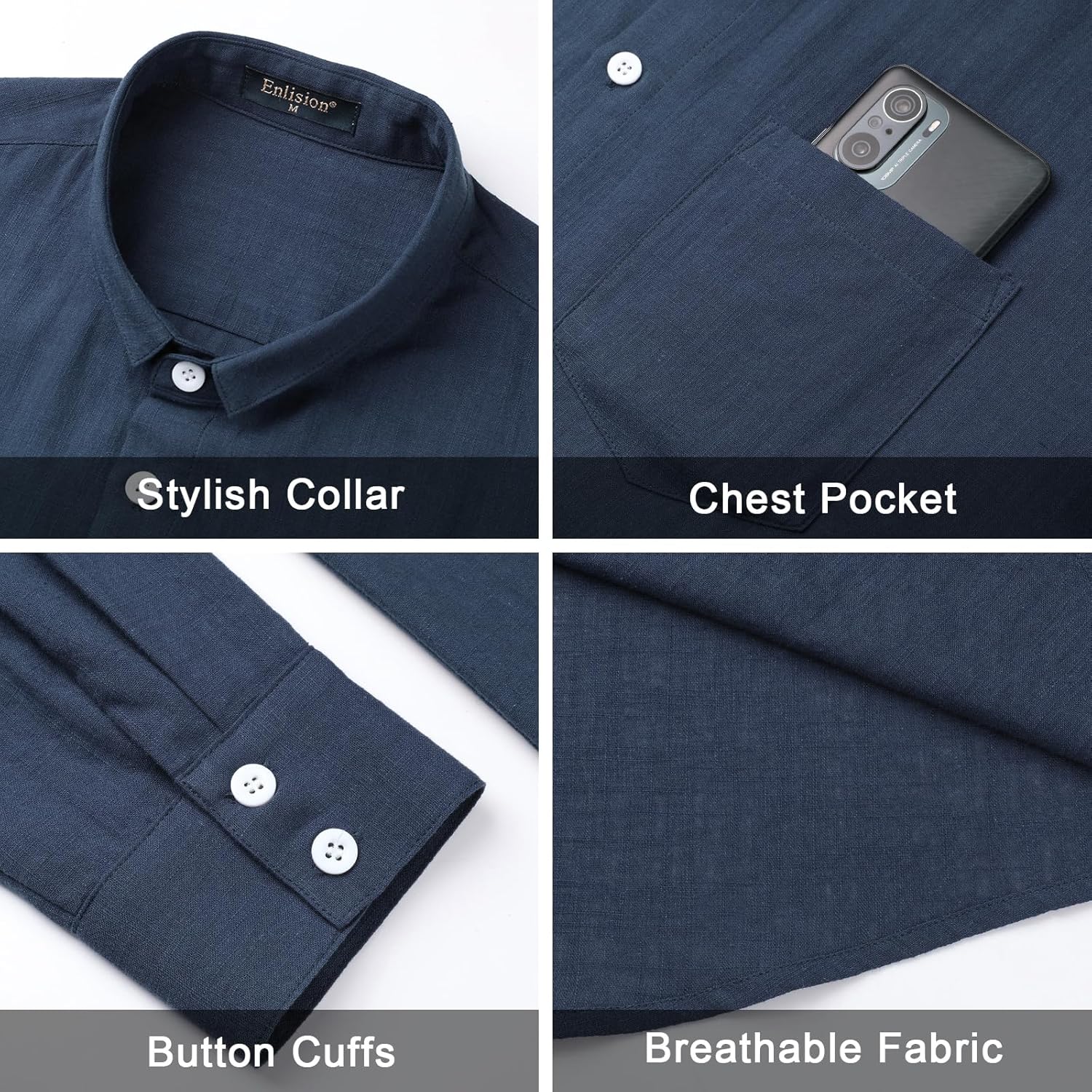 Enlision Camisas Lino Hombre Manga Larga Verano