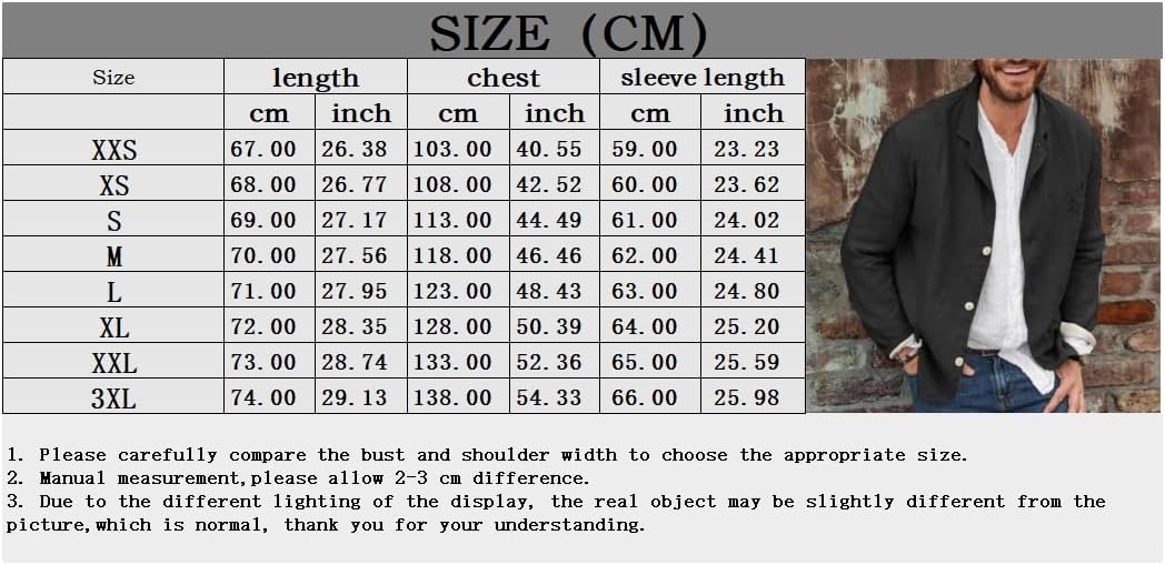 Genérico Men’s American Jacket, Men’s Casual Blazer Jacket, Sports Jacket, Cotton Linen Shirt, Lightweight Solid Cardigan with Buttons, Loose Fit, M