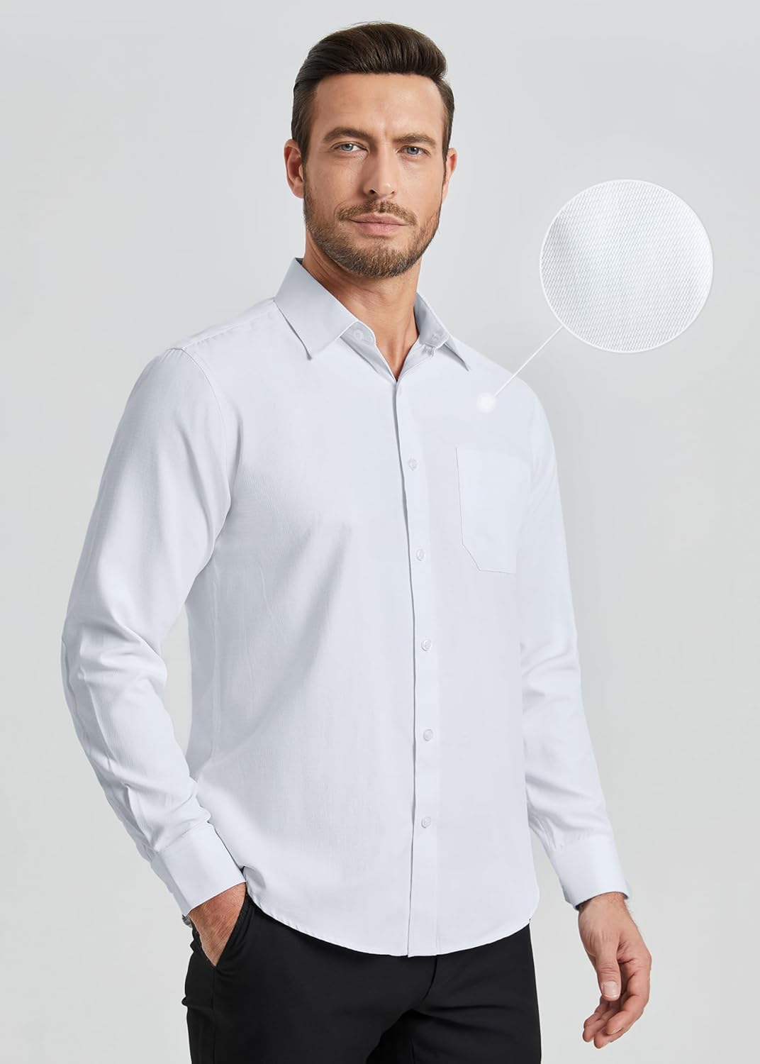 HISDERN mens dress shirts long sleeve button down casual mens contrast inside formal business tuxedo wedding