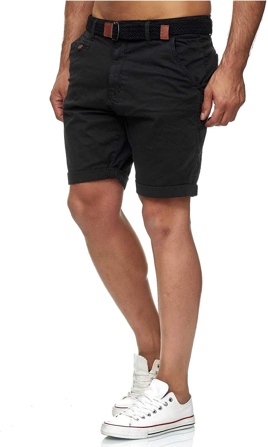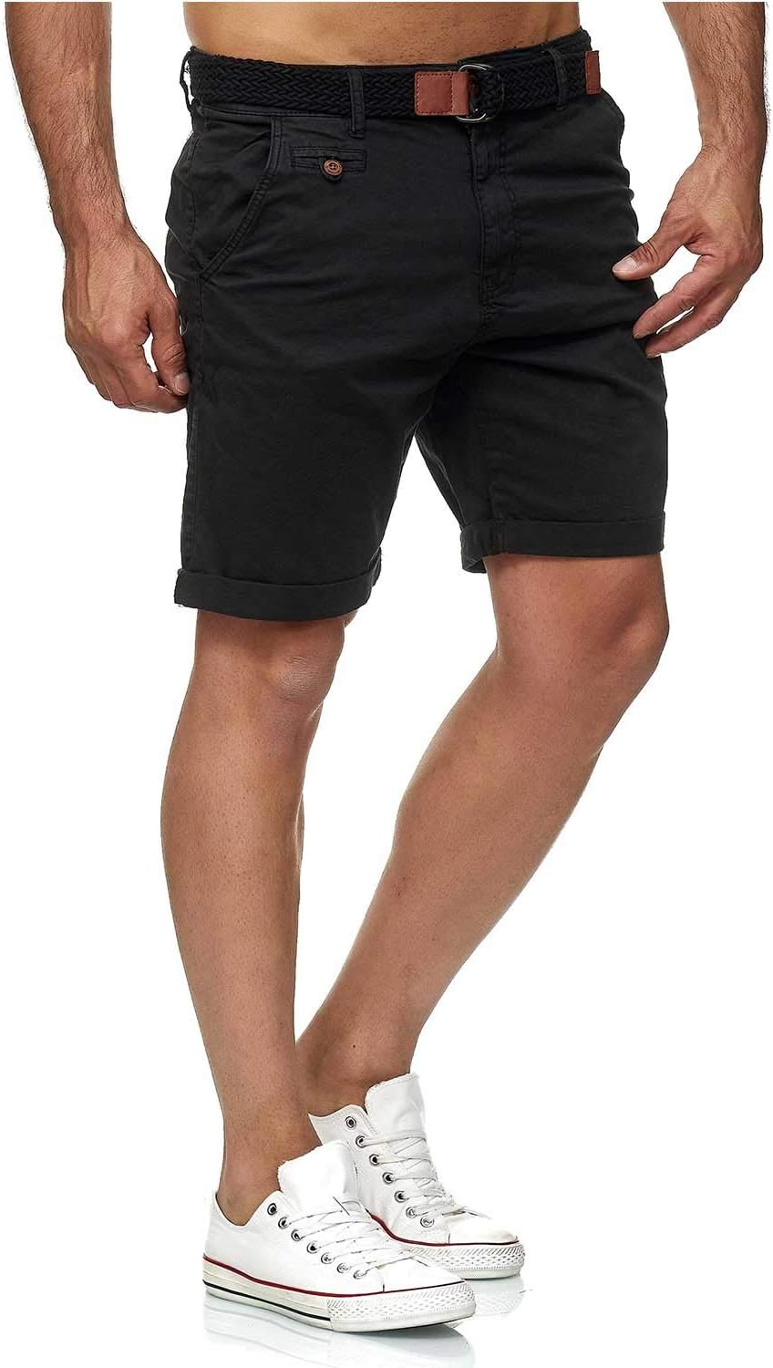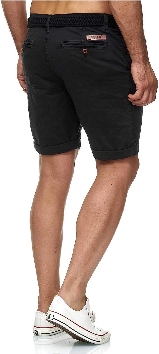 Indicode Modern Cotton Regular Fit Shorts with 2 Side and Back Pockets and Matching Color Belt