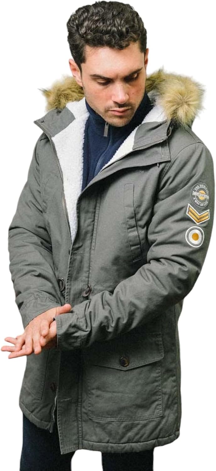 Men’s Winter Jacket, Vintage Retro 60s 70s Faux Leather Jacket Waterproof Pilot Style Winter Jacket
