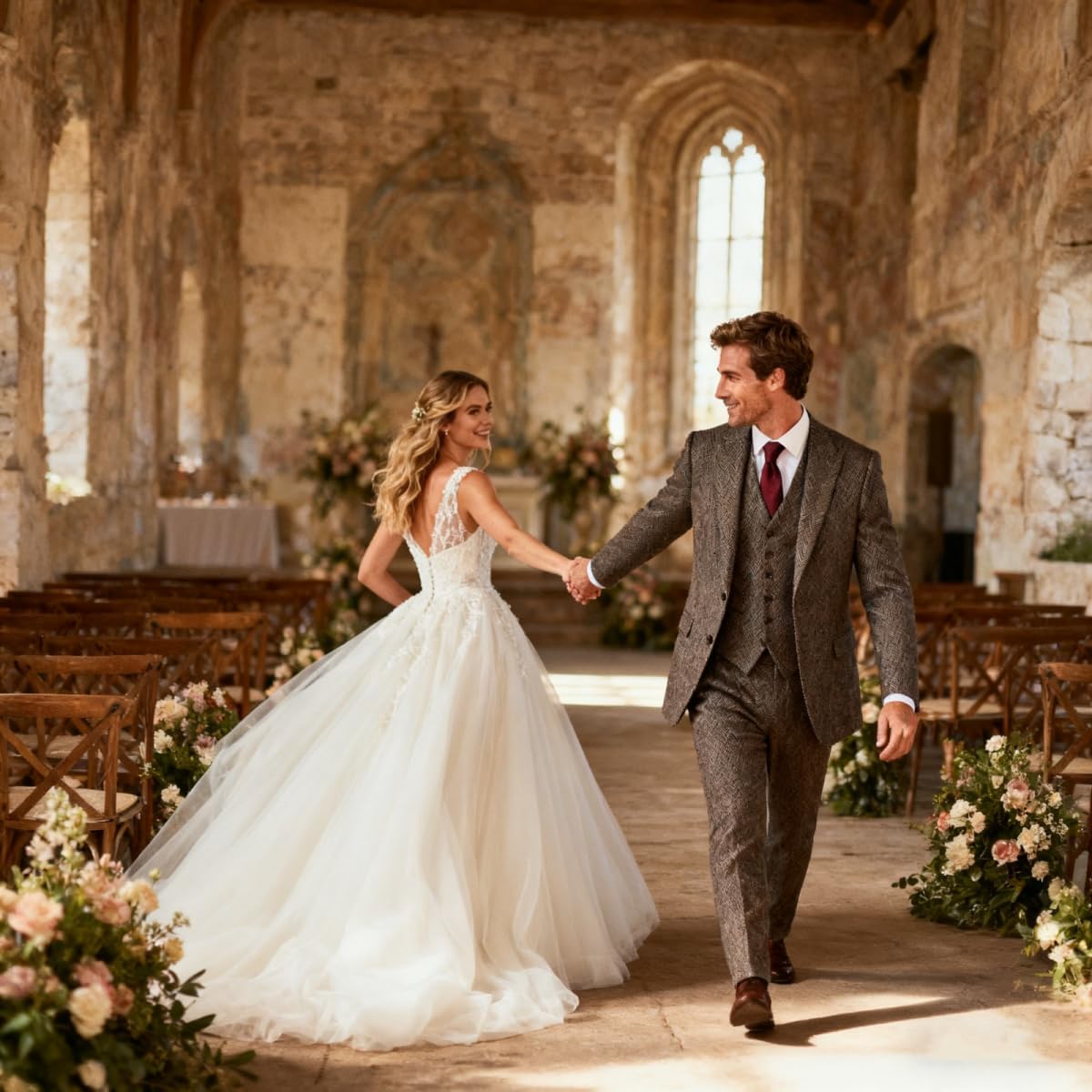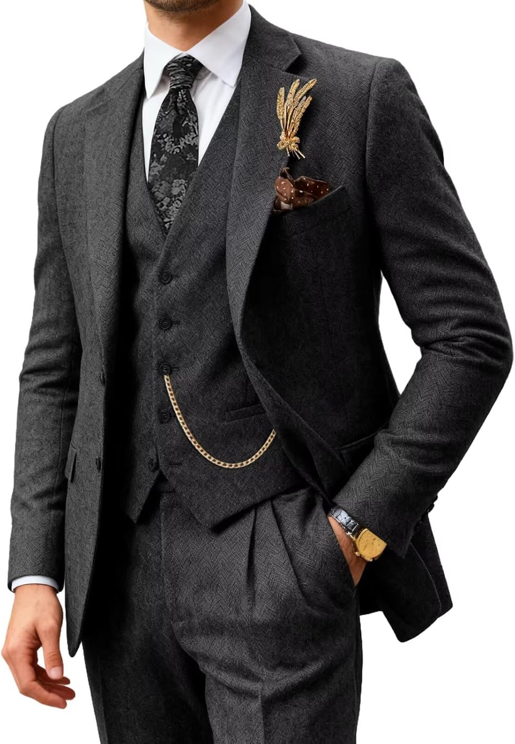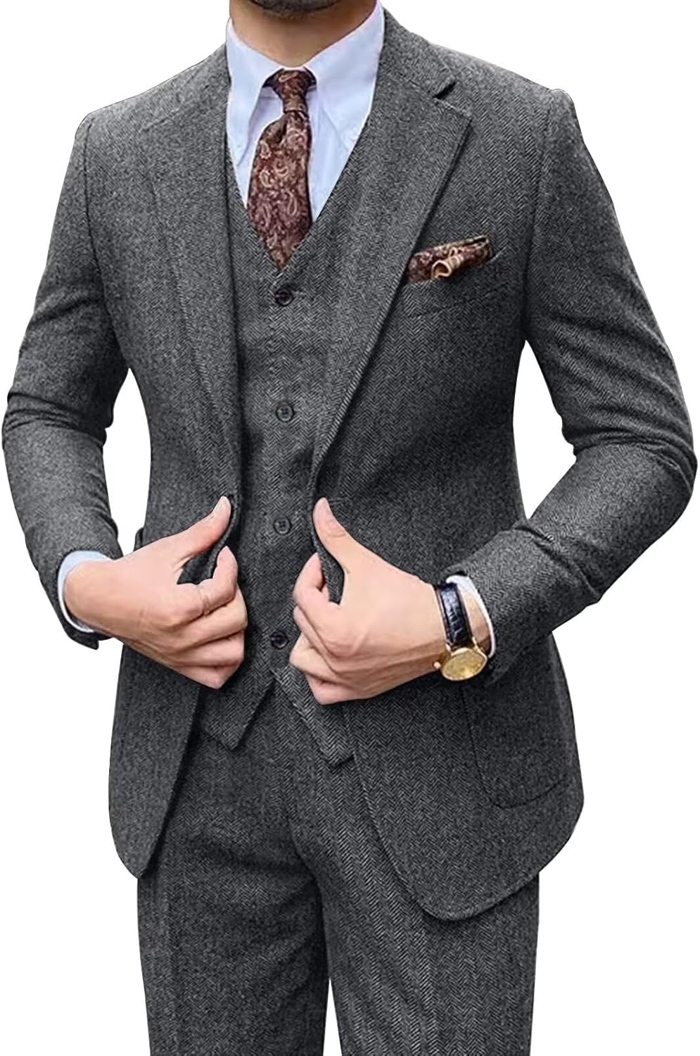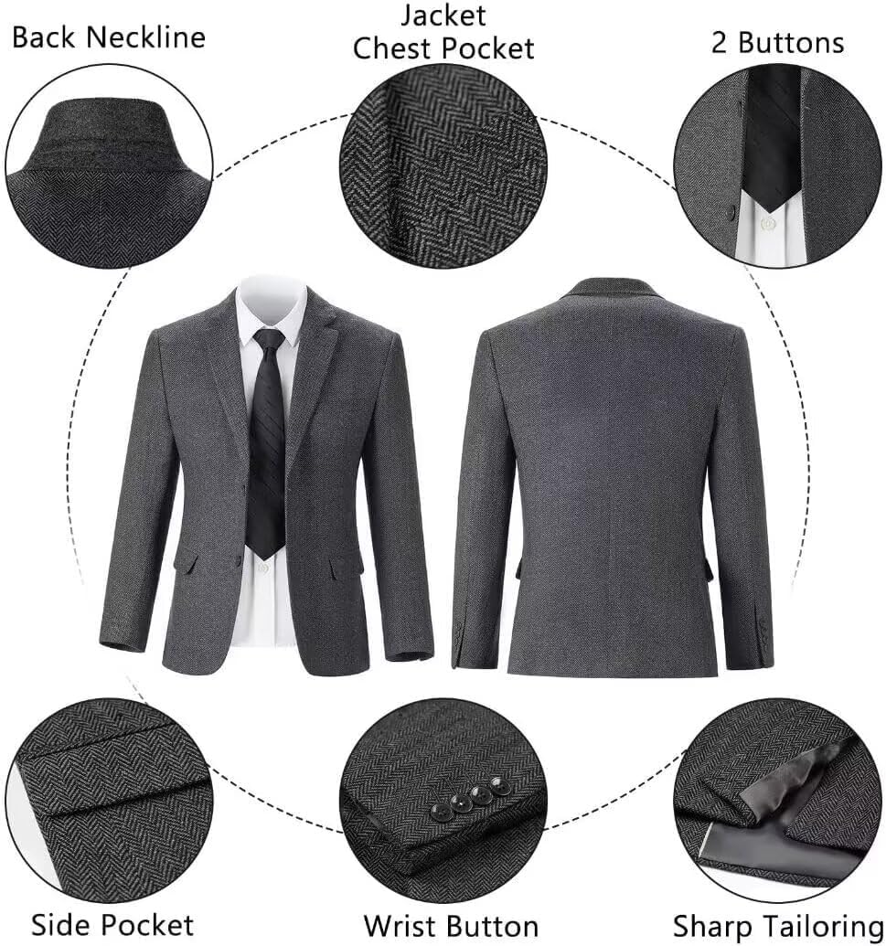 Tweed suits feature polyester fabric, give you a more noble disposition. Two-button single-breasted closure, notched lapel perfectly presents your gentleness.