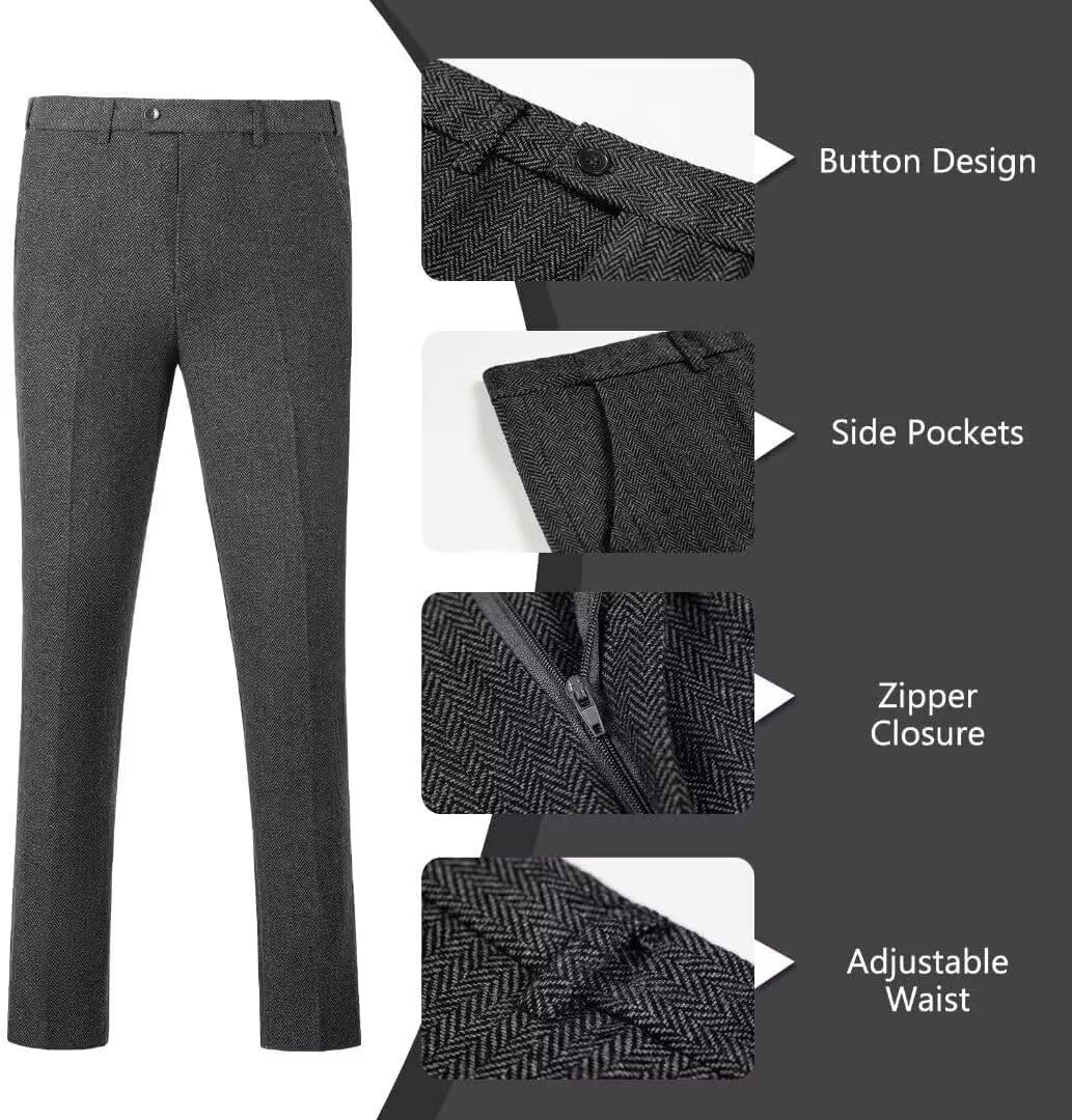 mens retro suit 3pcs tweed herringbone suits men wool jacket tuxedo wedding groom jacket vest pants dance set