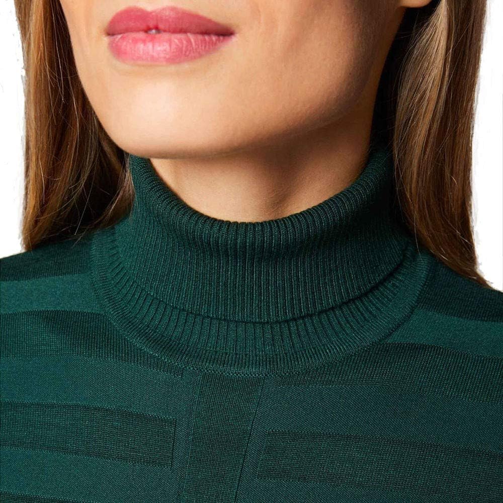 Schaut super aus, Rollkragen ist nicht zu eng, es ist sehr figurbetont und super angenehm zu tragen. Farbe ist auch sehr schön. Tolles Basic Teil für den Winter.