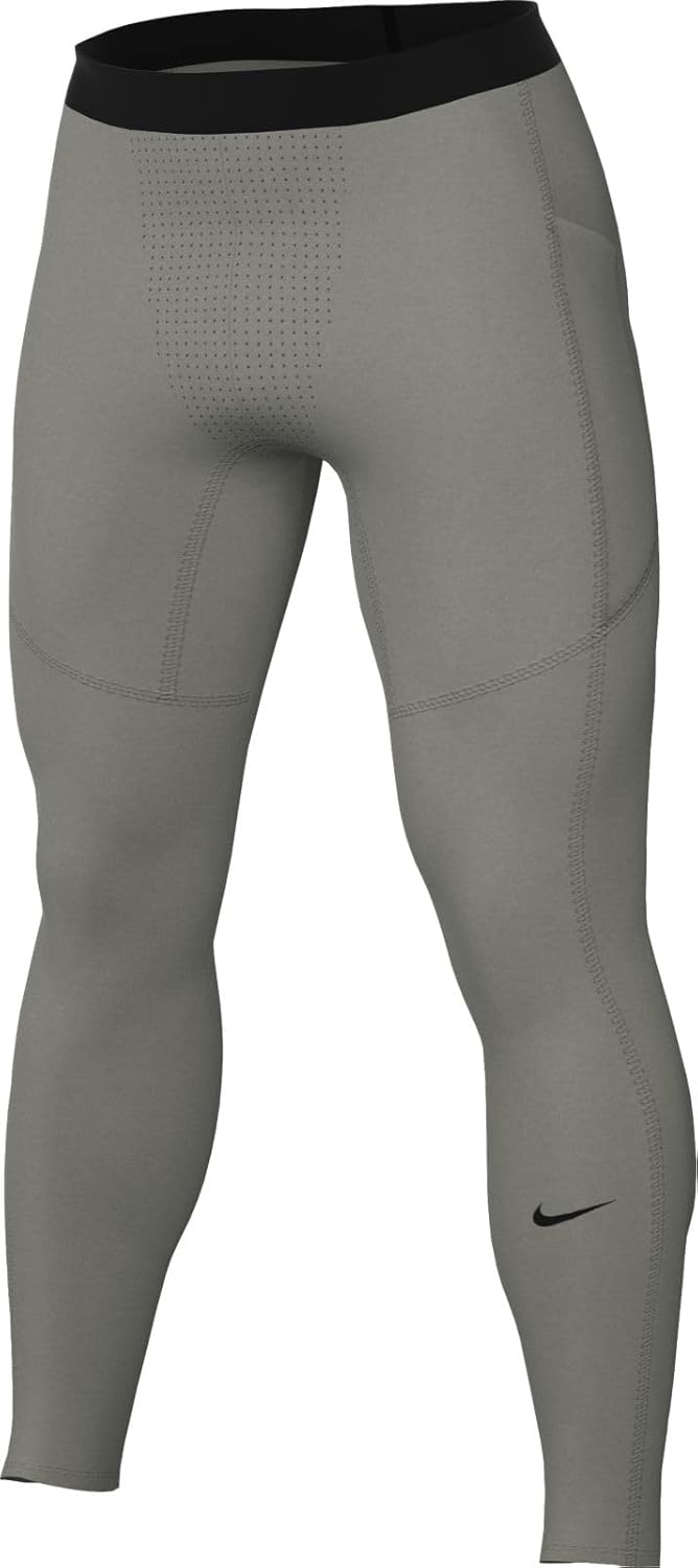 Nike Pro Dri-FIT Fitness Tights – Men Whether you’re struggling to work out regularly or you’re already a beast in the gym, the Nike Pro collection gives you the security to keep giving your all. These slim fit tights offer softness and stretch, and are designed to perform at your best in all your favorite sports and activities. Tip: Wear them alone or under your gym shorts. You decide! Nike Dri-FIT technology wicks sweat away from the skin to maintain breathability and comfort. Stretch knit fabric with a body-hugging fit so you can move naturally during your workouts and activities. Soft, stretchy waistband sits snugly at the hips. Side pocket for storing small items, such as keys and cards. Body: 90% polyester/10% spandex. Mesh: 92% polyester/8% spandex. Machine wash 90% POLYESTER 10% ELASTANE