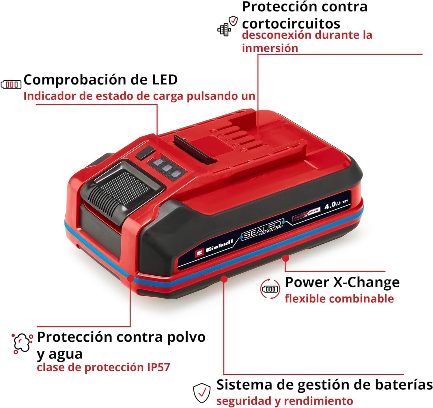Product Summary: Original Einhell 18 V 4.0 Ah Sealed Power X-Change Plus (18 V Battery, Waterproof and Dustproof, Protection Class IP57, Universal Use for All Power X-Change Devices without Charger)