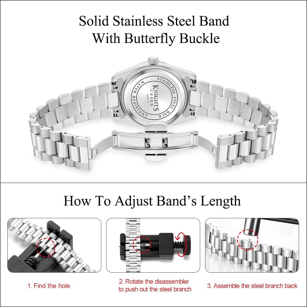 Ho ricevuto questo orologio e mi ha colpita subito per il suo aspetto bello ed elegante. Il design è classico, con dettagli luminosi che valorizzano il quadrante senza risultare eccessivi, rendendolo adatto sia all’uso quotidiano sia a occasioni più formali.Il cinturino in acciaio inossidabile è solido e confortevole al polso e risulta anche molto facile da regolare: è sufficiente rimuovere le maglie in eccesso per adattarlo perfettamente alla propria misura, operazione semplice e veloce grazie all’attrezzo incluso.Una volta al polso, è leggero e preciso, con una percezione di solidità e cura nei dettagli. Resiste senza problemi ai piccoli contatti quotidiani con l’acqua, risultando pratico per l’uso di tutti i giorni.Sono molto soddisfatta perché è un accessorio elegante e ben realizzato, ideale per chi cerca un orologio femminile, sobrio e facile da indossare, capace di completare con discrezione qualsiasi outfit.
