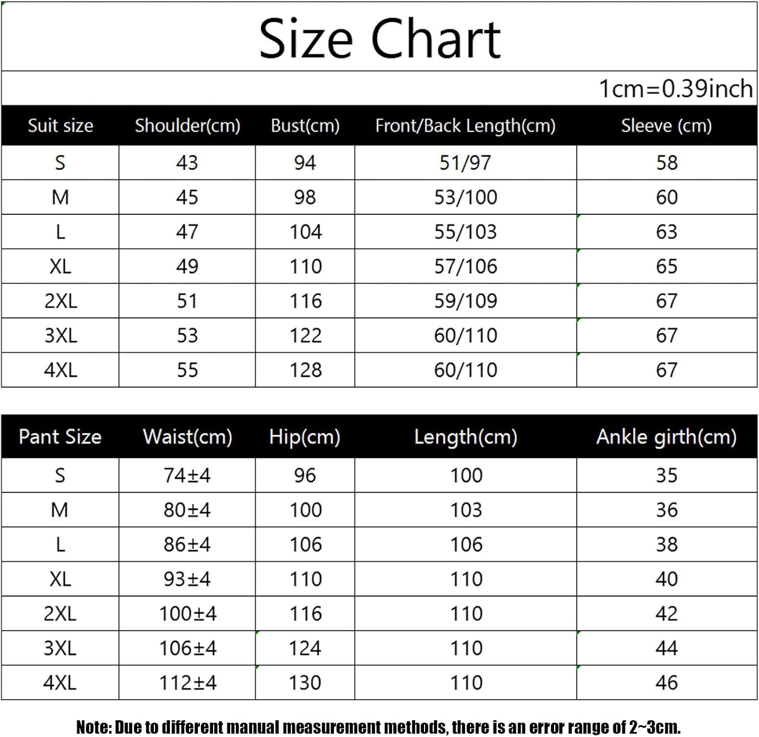 【Size】Slim fit design, with size chart and height and weight measurements in the product image.