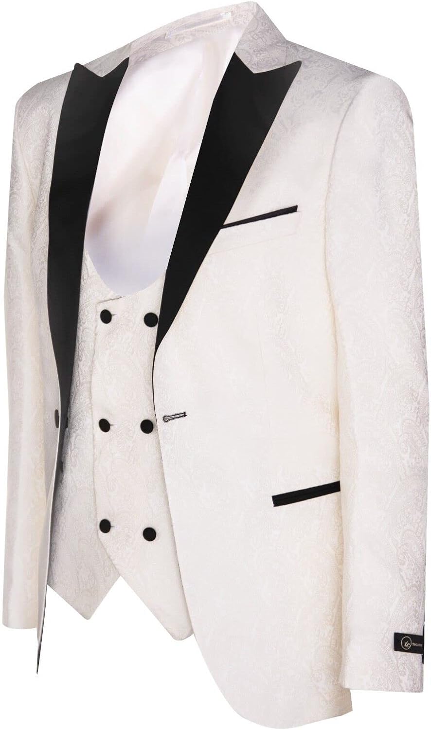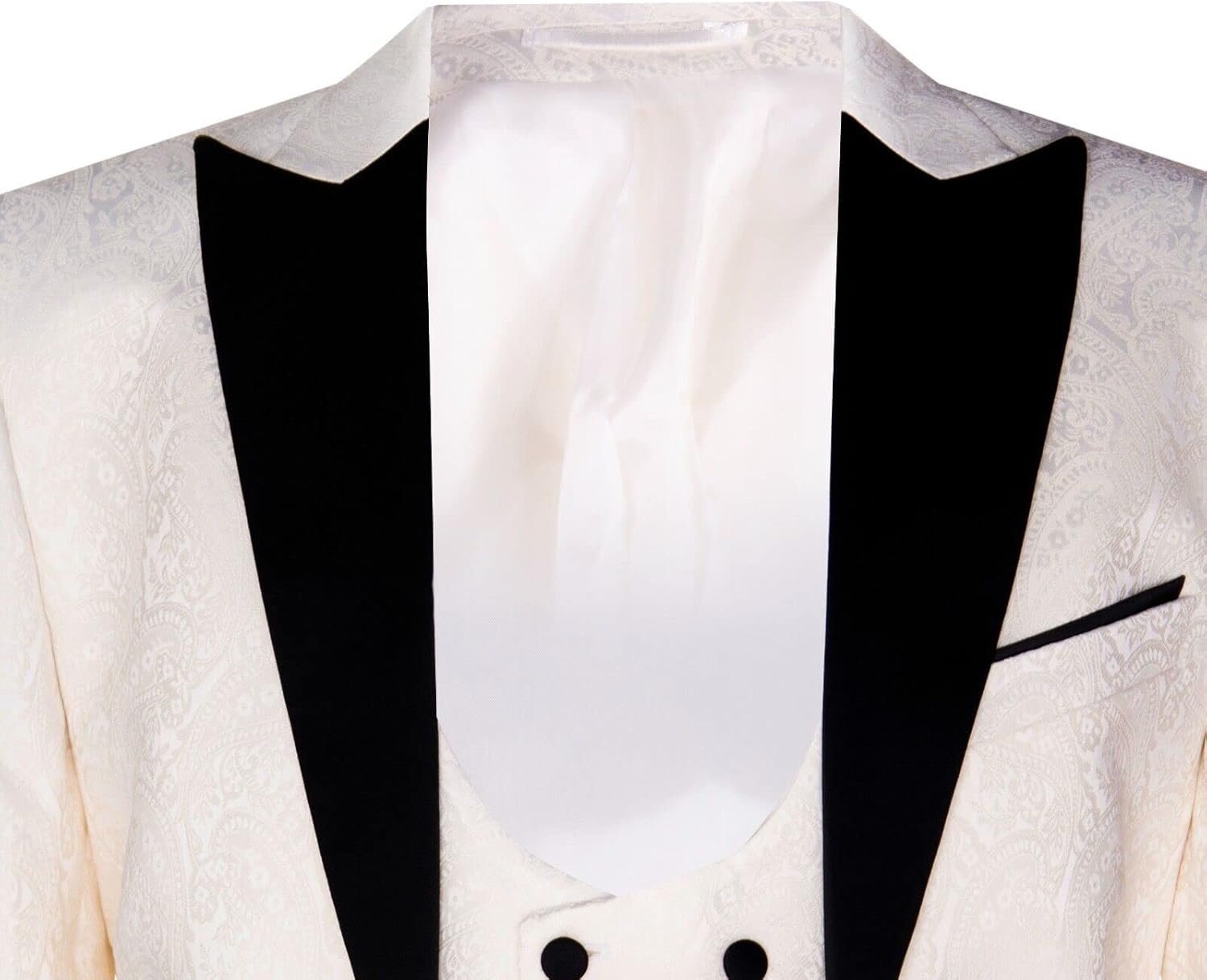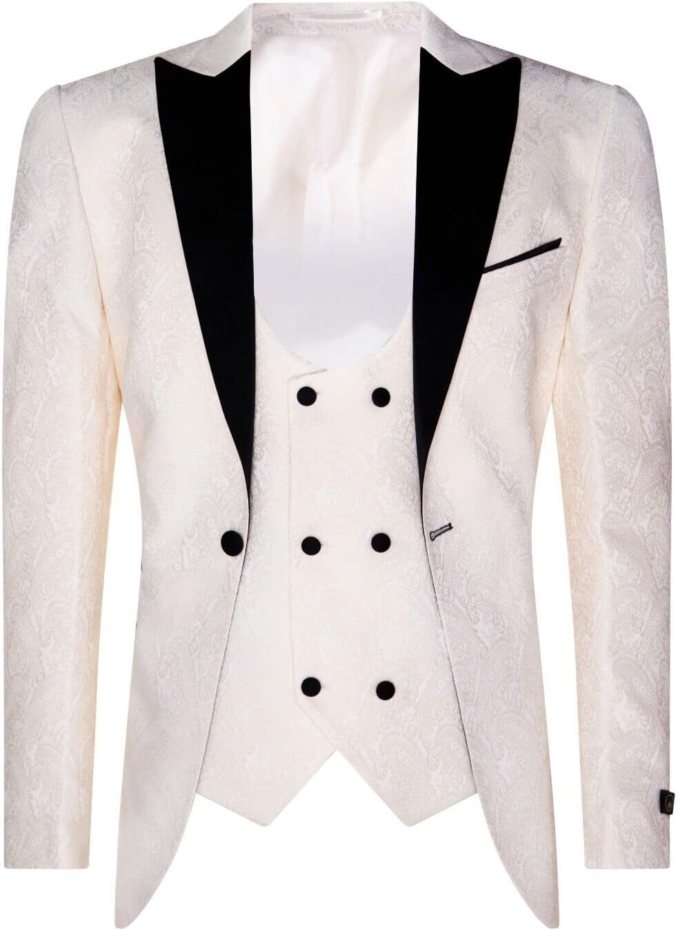 TruClothing Beige Tuxedo Blazer P;ara Men’s, Brocade Vest Ivory Satin Paisley, Dinner Jacket