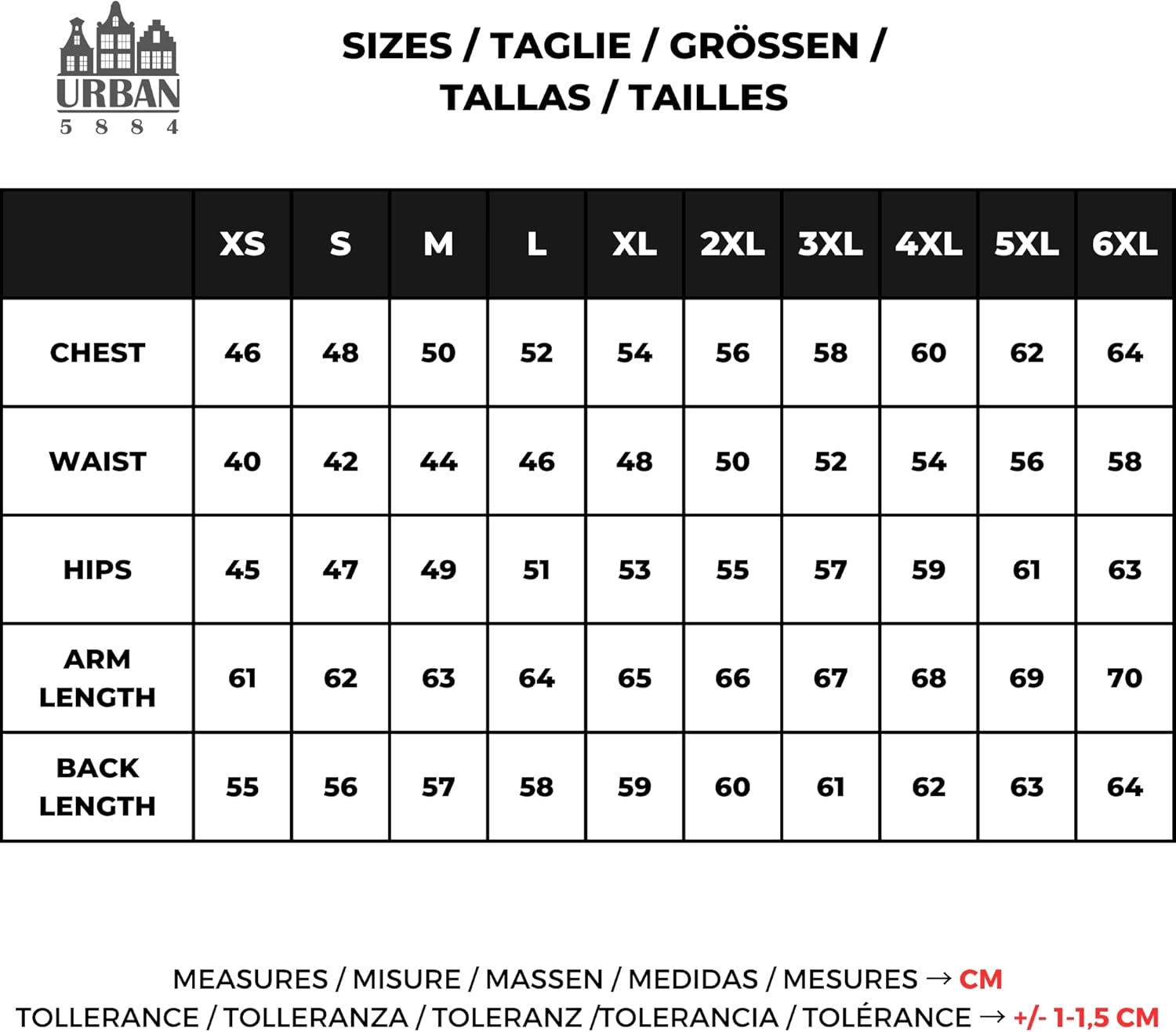 Nuestras chaquetas están disponibles en diferentes tallas, desde la XS hasta la 5XL. Consulte nuestra tabla de tallas para encontrar la que mejor se adapte a usted.