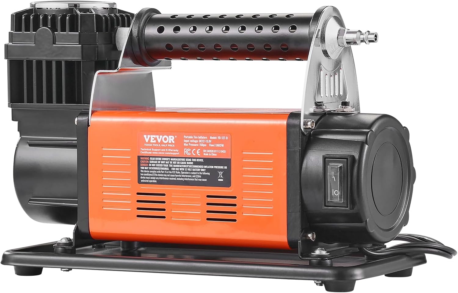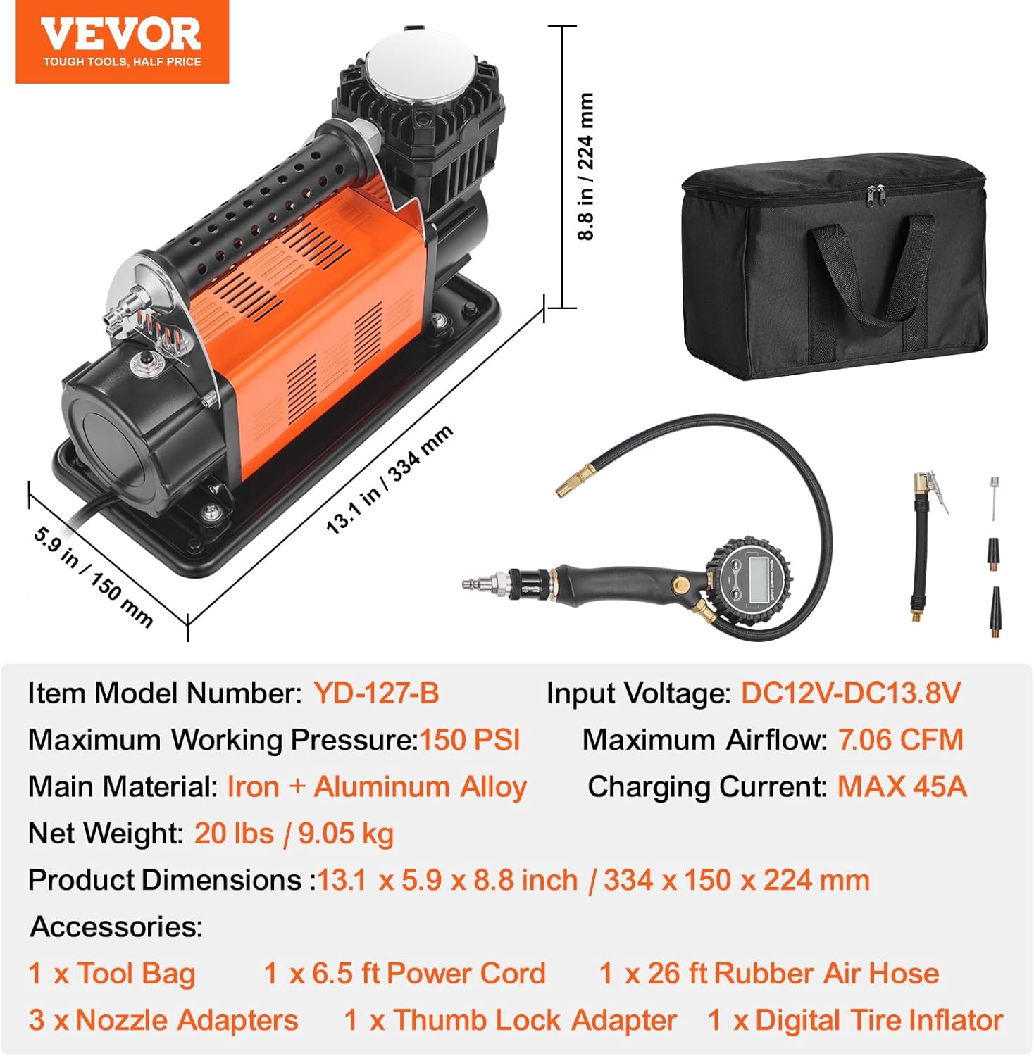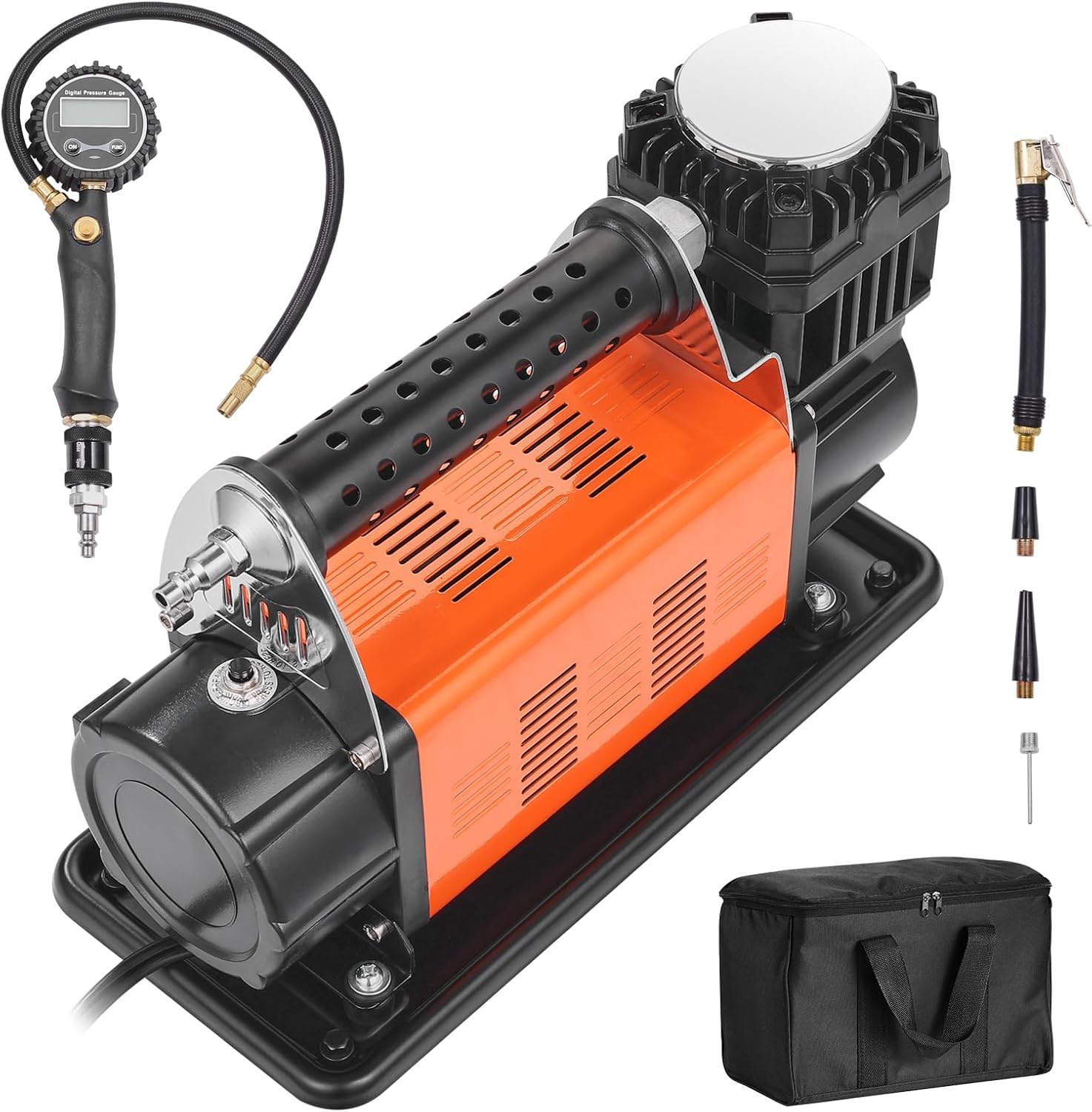 VEVOR 12V Heavy Duty Air Compressor with Digital Pressure Gauge Tire Inflation Kit, 7.06 CFM, 150 PSI, Adapters for Trucks, Cars, SUVs, 330 x 150 x 224 mm
