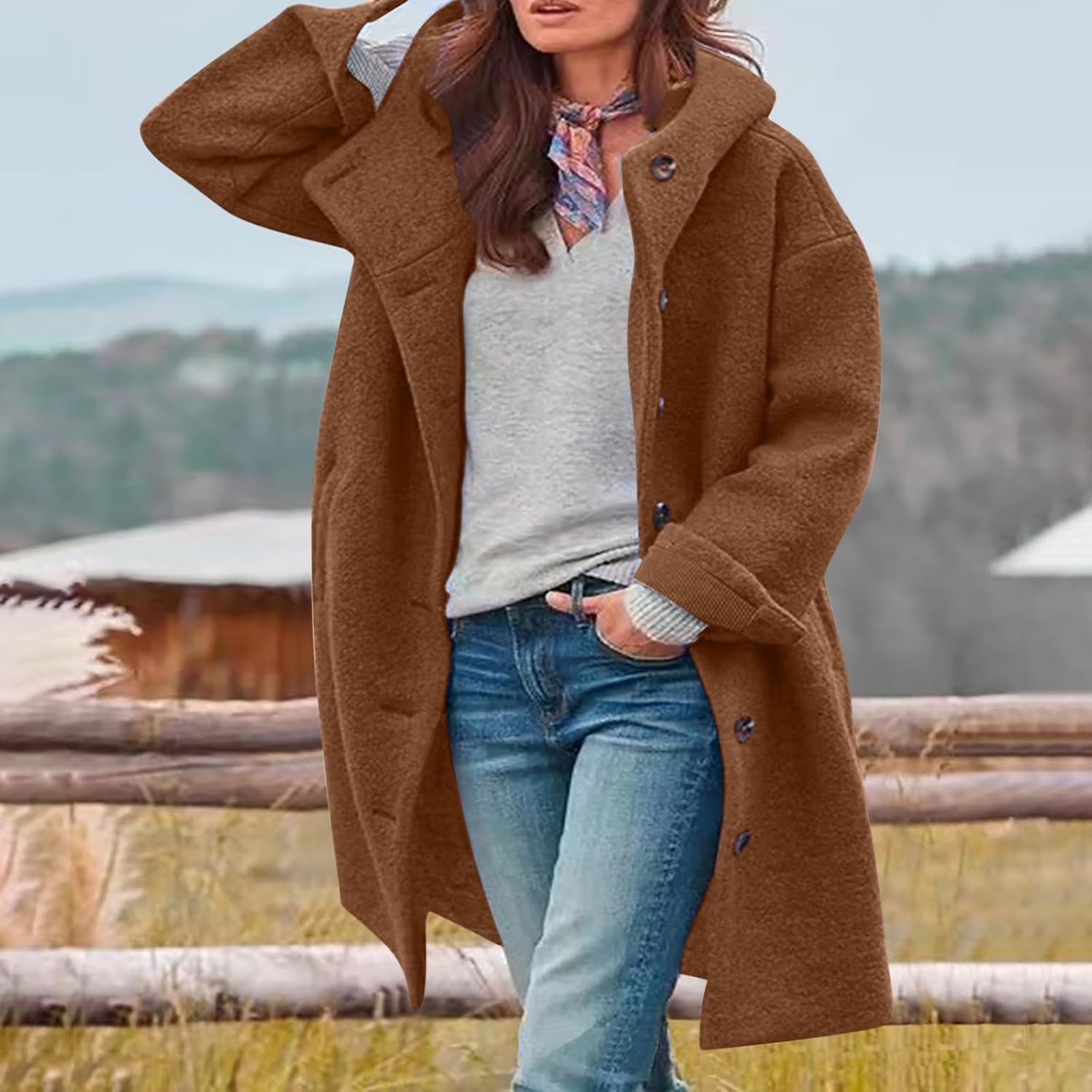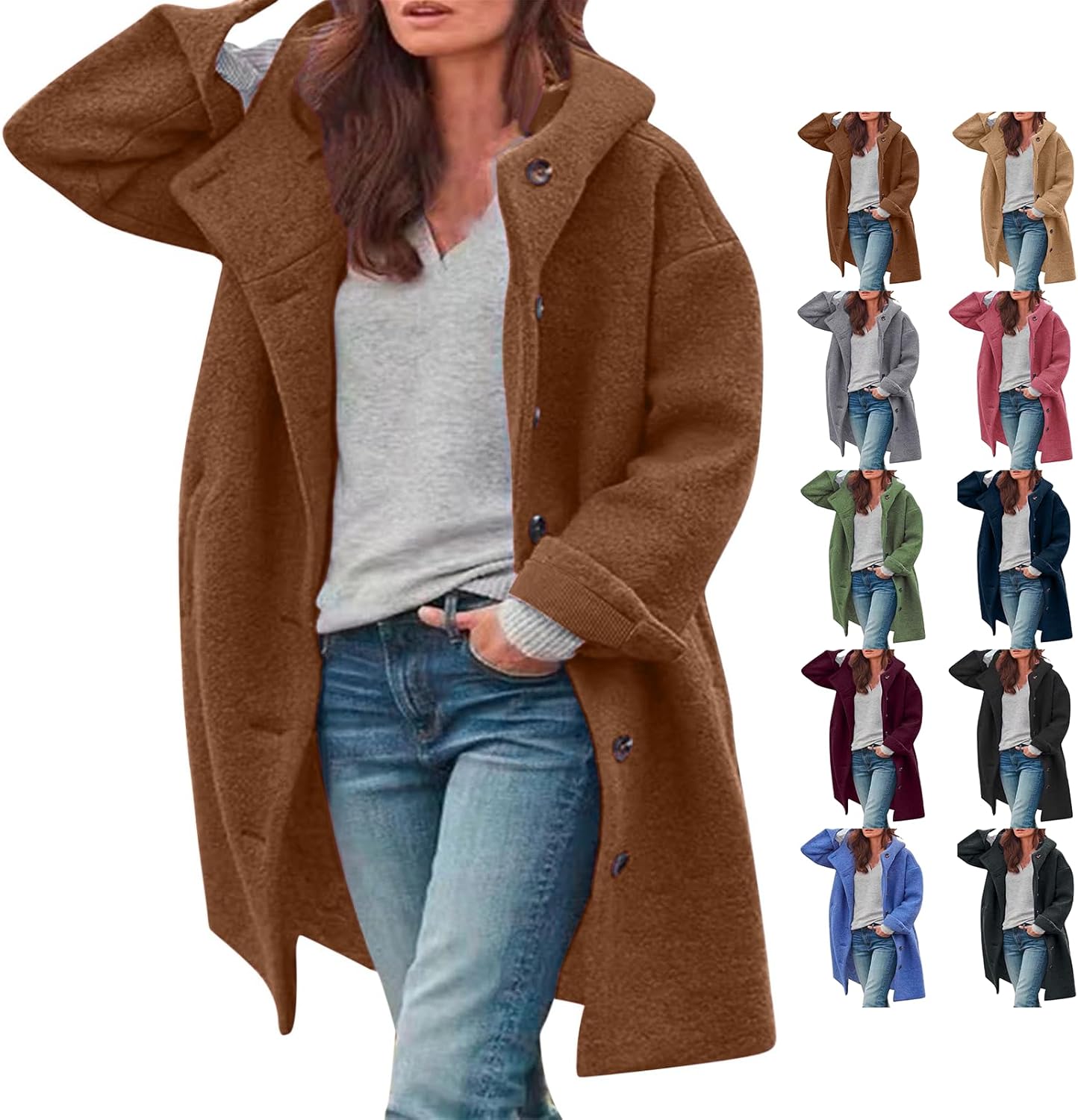 Abrigo Mujer Invierno Botonadura Abrigo Mezcla de Lana Grueso y CáLido Abrigos Paño Elegantes Coat con Cuello de Solapa Longitud Media Chaqueta