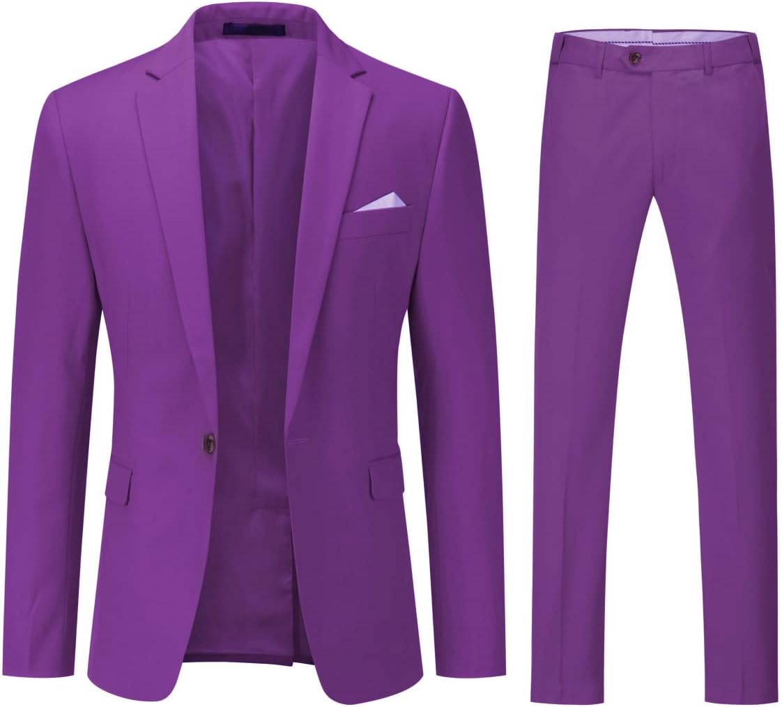 YOUTHUP Men’s Slim Fit 2 Piece Suit Single Breasted Business Wedding Suits 1 Button Blazer and Pants